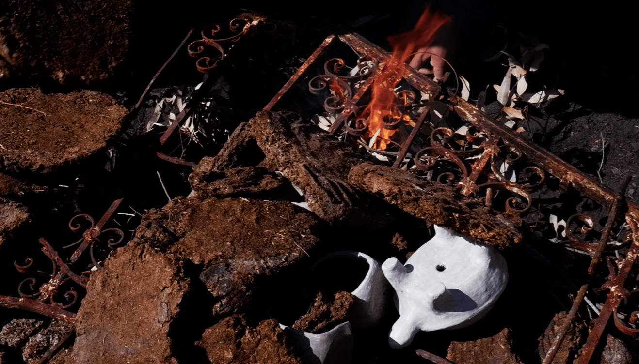 Ici, pas de fours. La cuisson se fait à même le sol sur un lit de branches séchées avec comme combustible la bouse de vache. Pour obtenir la couleur noire, l’objet une fois cuit est recouvert, encore brûlant, de débris de bois et il va se carboniser.