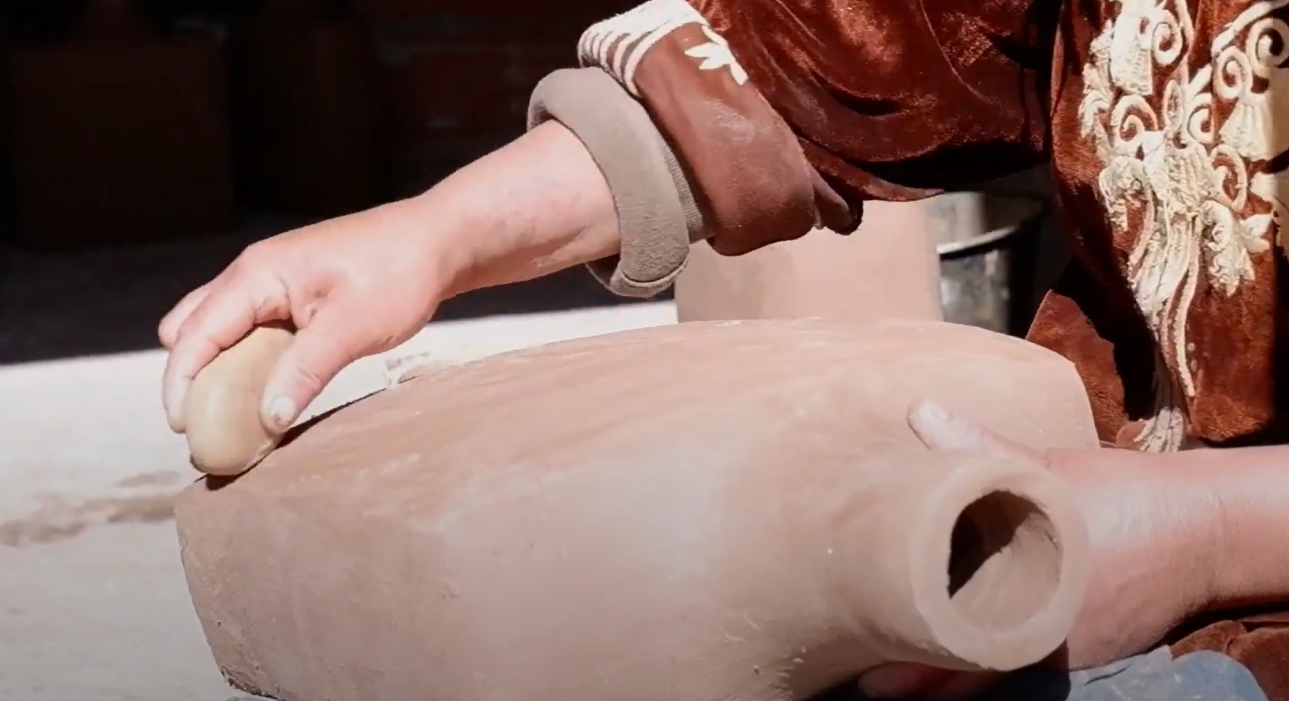 La poterie sèche à l’air libre puis est polie avec des galets ou des coquillages pour obtenir un rendu lisse.